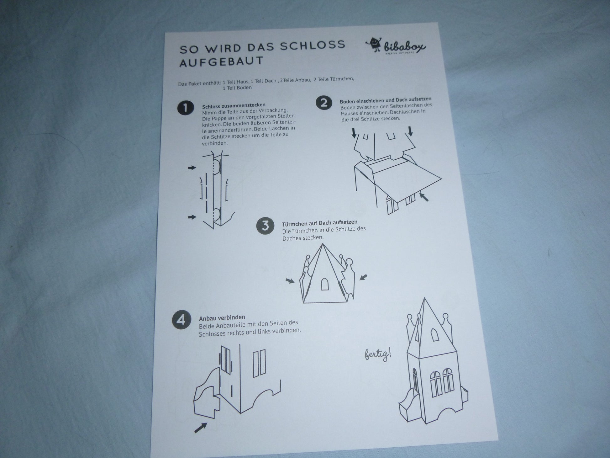 Einfach die Formen aus den Papptafeln herausbrechen und nach Anleitung zusammenstecken, ( keine Schere oder Klebstoff erforderlich), Nach Wunsch kreativ gestalten und losspielen